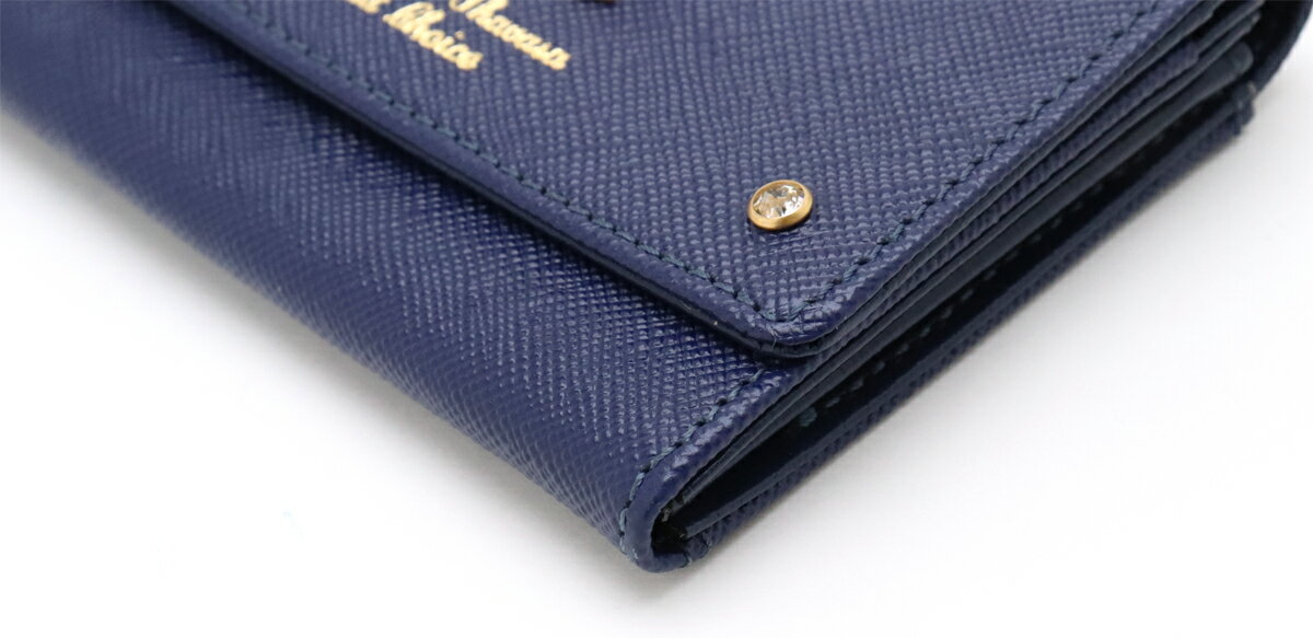 【未使用品】【財布】Samantha Thavasa サマンサ タバサ Petit Choice プチ チョイス リボン カードケース 名刺入れ パスケース レザー ブルー 青 ゴールド金具 【中古】