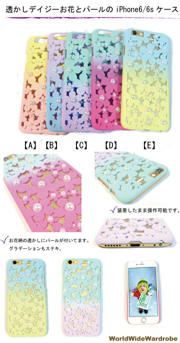 透かしお花デイジーとパールグラデーションiPhone6/6sカバージャケットケー ス 真ん中にパールが入ったデイジーのお花の透かし柄がとってもかわいいiPhone6/6sのカバーケース。