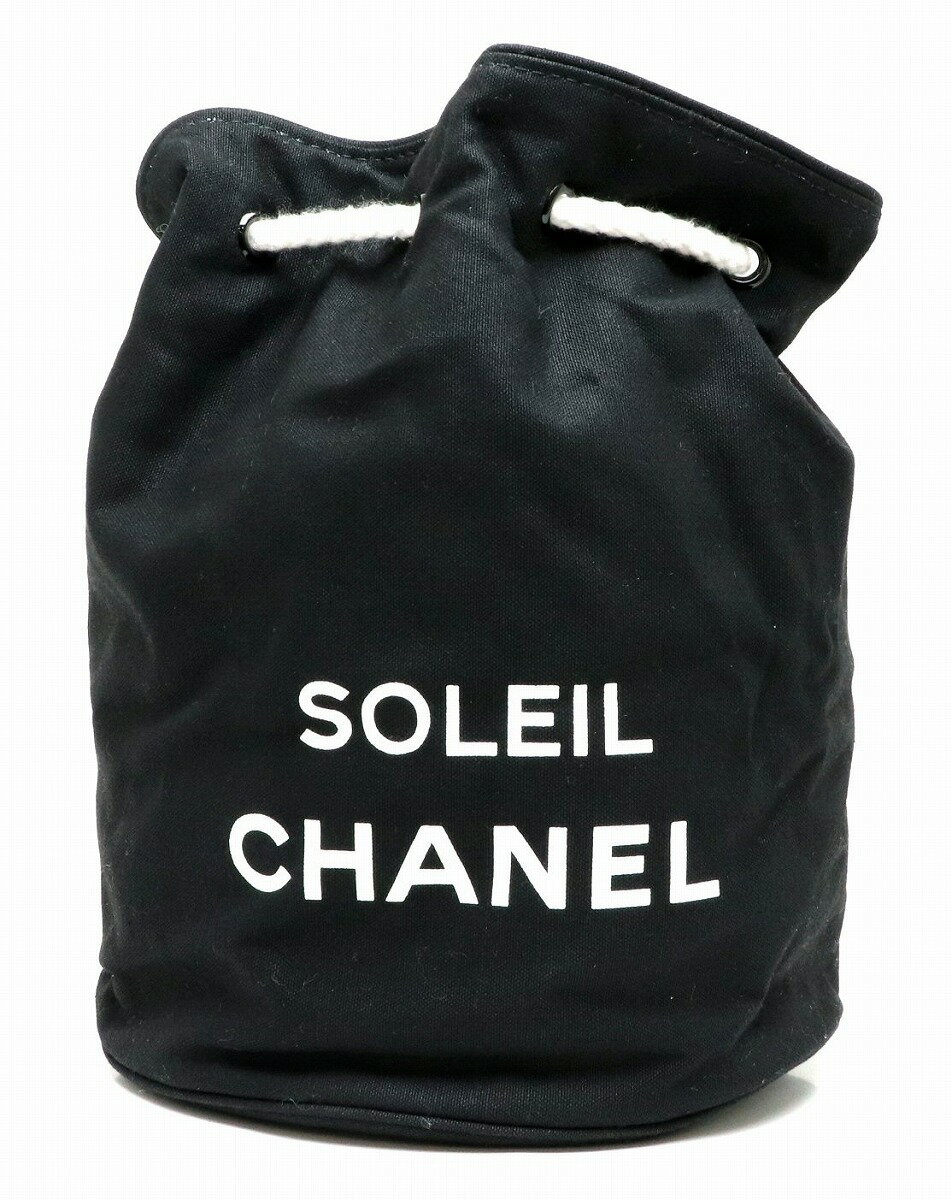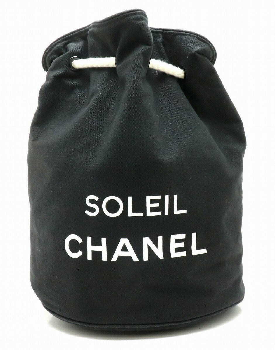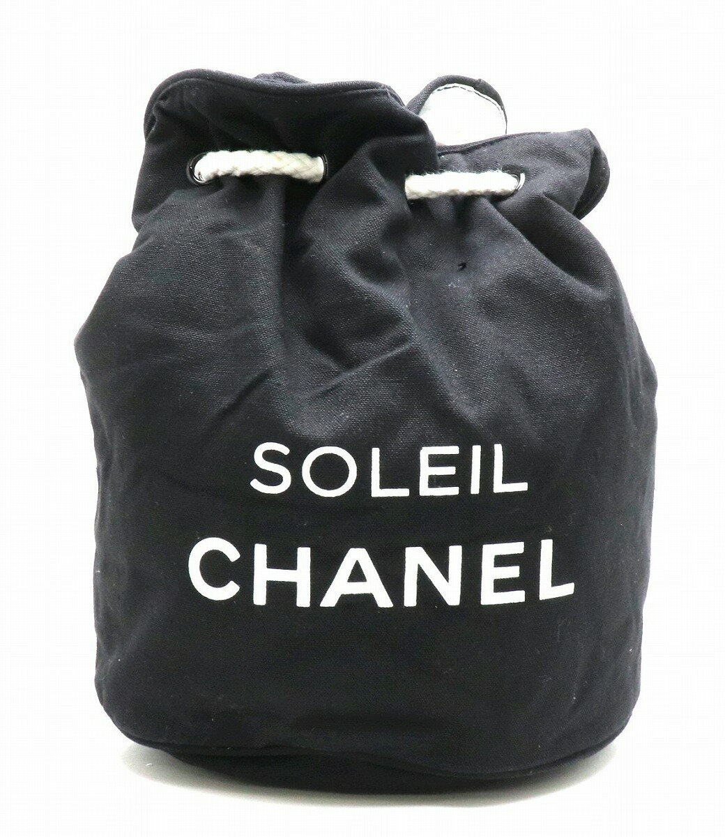【バッグ】CHANEL シャネル SOLEIL ソレイユ ノベルティ ロゴプリント プールバッグ ショルダーバッグ 巾着 スポーツ キャンバス ブラック ホワイト 【中古】【s】