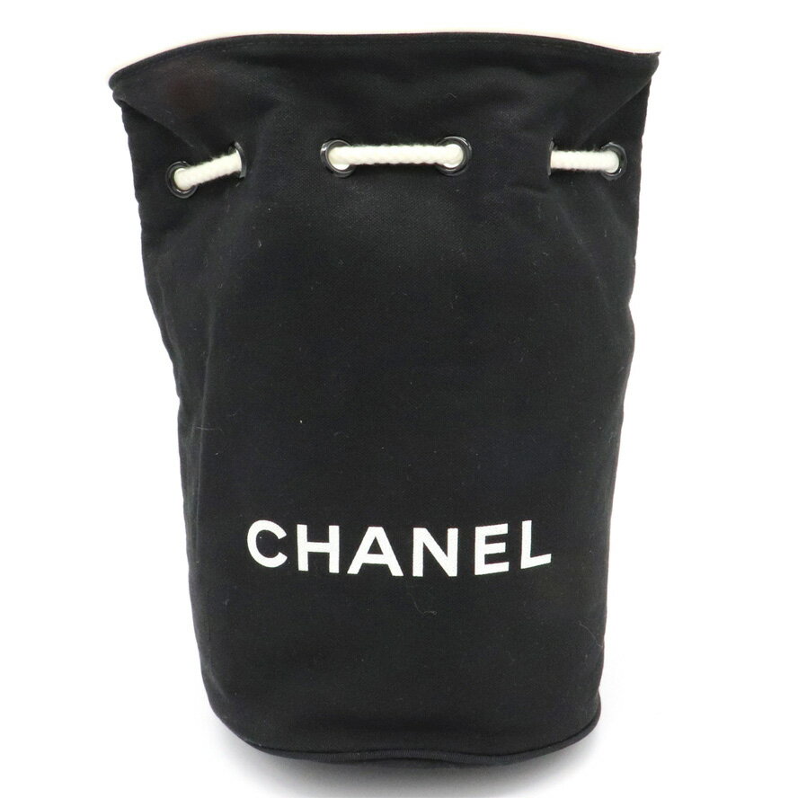 【バッグ】CHANEL シャネル ノベルティ ロゴプリント プールバッグ ショルダーバッグ 巾着バッグ スポーツ キャンバス 黒 ブラック 白 ホワイト 【中古】【s】