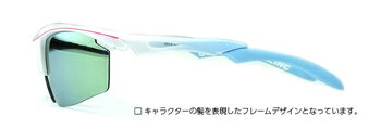 レーシングミク 2014 ver.の髪の色をイメージした白から青へのグラデーションカラーや、レーシングマシンを思わせるスピード感溢れる流線型のフレームデザインなど、初音ミクGTプロジェクトを応援する多くのファンの方々に楽しんでいただける機能性アイウェアです。