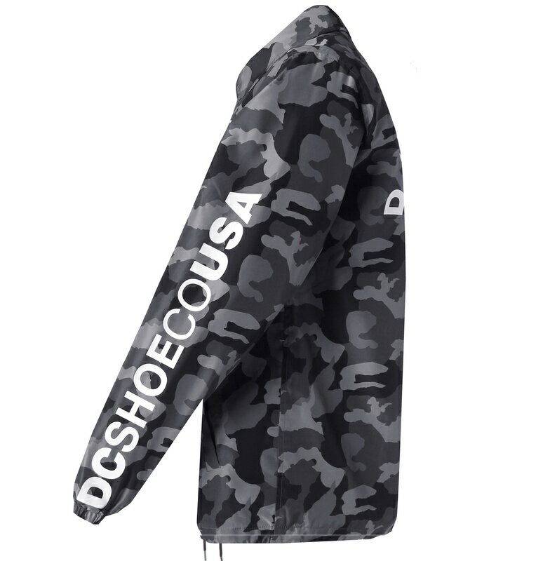 袖や前後の見頃にエッジの効いたロゴプリントを配し、全体にシンプルかつリズムカルな流れをデザインしたライトジャケットです。